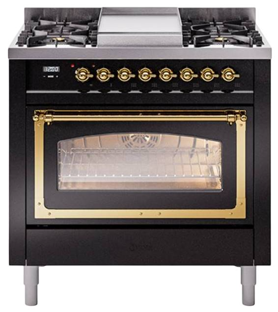 Introducing the new Nostalgie II 36" dual fuel range, a classic addition with a touch of innovation to any kitchen. This range feature sealed burners equipped with total black brass burner that has a non-stick nanotechnological coating, heavy cast iron grates, 3.5 cu. ft. total oven capacity and soft closing door system.Read More