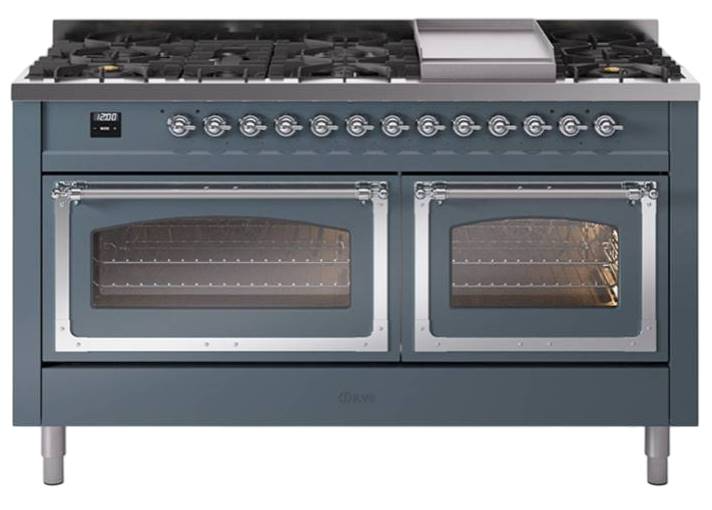 Introducing the new Nostalgie II 60″ dual fuel range, a classic addition with a touch of innovation to any kitchen. This range feature sealed burners equipped with total black brass burner that has a non-stick nanotechnological coating, heavy cast iron grates, 3.5 + 2.3 cu. ft. dual oven capacity and soft closing door system.Read More