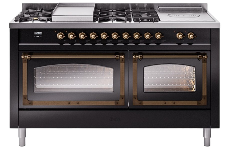 Introducing the new Nostalgie II 60" dual fuel range, a classic addition with a touch of innovation to any kitchen. This range feature sealed burners equipped with total black brass burner that has a non-stick nanotechnological coating, heavy cast iron grates, 3.5 + 2.3 cu. ft. dual oven capacity and soft closing door system.Read More