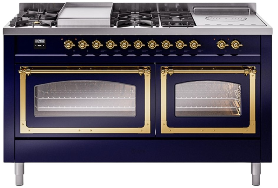 Introducing the new Nostalgie II 60" dual fuel range, a classic addition with a touch of innovation to any kitchen. This range feature sealed burners equipped with total black brass burner that has a non-stick nanotechnological coating, heavy cast iron grates, 3.5 + 2.3 cu. ft. dual oven capacity and soft closing door system.Read More