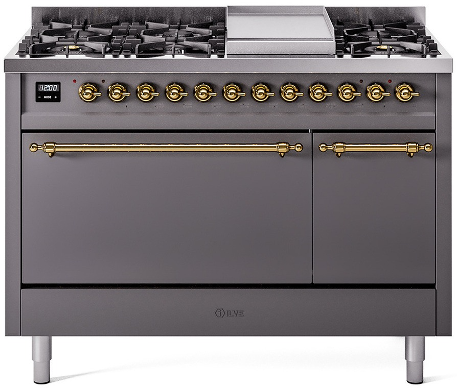 Introducing the new Nostalgie II 48" dual fuel range, a classic addition with a touch of innovation to any kitchen. This range feature sealed burners equipped with total black brass flame spreader that has a non-stick nanotechnological coating, heavy cast iron grates, 3.5 + 1.52 cu. ft. total double oven capacity and soft closing door system.Read More