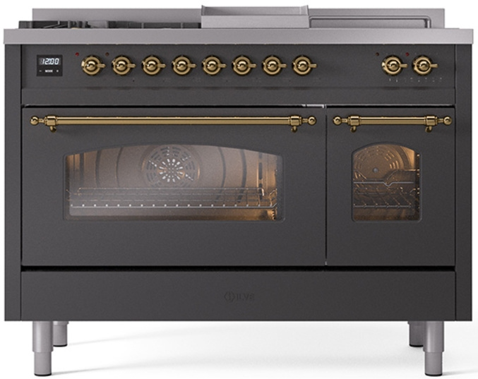 Introducing the new Nostalgie II 48" dual fuel range, a classic addition with a touch of innovation to any kitchen. This range feature sealed burners equipped with total black brass flame spreader that has a non-stick nanotechnological coating, heavy cast iron grates, 3.5 + 1.52 cu. ft. total double oven capacity and soft closing door system.Read More