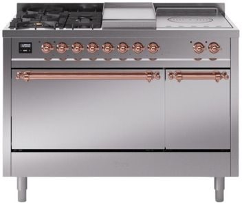 Introducing the new Nostalgie II 48" dual fuel range, a classic addition with a touch of innovation to any kitchen. This range feature sealed burners equipped with total black brass flame spreader that has a non-stick nanotechnological coating, heavy cast iron grates, 3.5 + 1.52 cu. ft. total double oven capacity and soft closing door system.Read More
