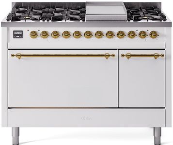 Introducing the new Nostalgie II 48" dual fuel range, a classic addition with a touch of innovation to any kitchen. This range feature sealed burners equipped with total black brass flame spreader that has a non-stick nanotechnological coating, heavy cast iron grates, 3.5 + 1.52 cu. ft. total double oven capacity and soft closing door system.Read More
