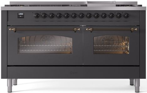 Introducing the new Nostalgie II 60" dual fuel range, a classic addition with a touch of innovation to any kitchen. This range feature sealed burners equipped with total black brass flame spreader that has a non-stick nanotechnological coating, heavy cast iron grates, 3.5 + 2.3 cu. ft. dual oven capacity and soft closing door system.Read More