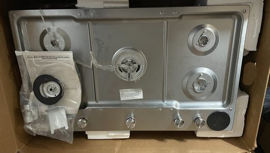 If you love to experiment and push culinary limits, you'll appreciate the power and versatility of this 36-inch cooktop. Five individual burners includes a powerful 20K BTU Dual Ring Burner that is among the most powerful in the industry. The eye-catching design includes Multi-Finish Knobs and the scratch-resistant CookShield Finish help protect the surface against stains that may occur with high-temperature cooking. This cooktop is a former floor model, brand new with all parts and pieces. The knobs are scratched but can be replaced for an additional $250 (or take it as is today). Full warranty starts from date of delivery. *Please call store to verify availability*Read More