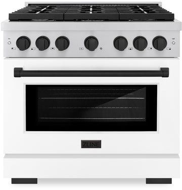 Luxury isn’t meant to be desired - it’s meant to be attainable. The ZLINE Autograph Edition 36 in. 5.2 cu. ft. Paramount Gas Range with 6 Burner Cooktop and Convection Gas Oven in Stainless Steel with White Matte Door and Matte Black Accents (SGRZ-WM-36-MB) features a versatile gas cooktop with 6 Italian-made auto-reignition burners, a high-performing gas convection oven, enhanced cast iron grates, a beautiful white matte door with a Horizon window design, and elegant matte black knobs and handle allowing you to master every meal. With a modern, timeless style and refined functionality, ZLINE Paramount Gas Ranges are masterfully crafted to deliver an elevated culinary experience.Read More