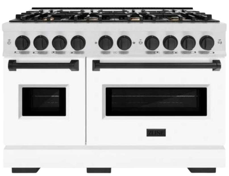 Luxury isn’t meant to be desired - it’s meant to be attainable. The ZLINE Autograph Edition 48 in. 6.7 cu. ft. Classic Double Oven Dual Fuel Range with 8 Burner Gas Cooktop in Satin Stainless Steel with White Matte Doors and Matte Black Accents (CDRSZ-WM-48-MB)Read More