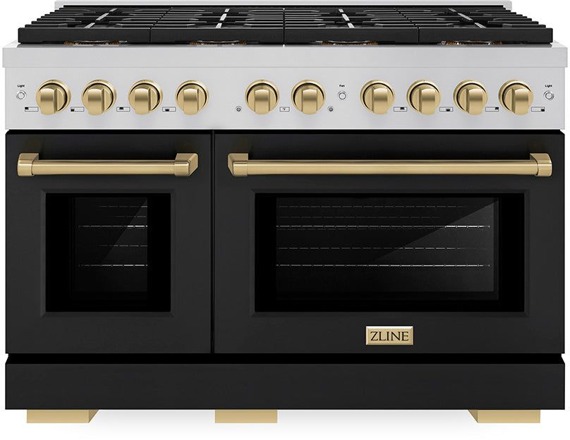 Luxury isn’t meant to be left desired—it’s meant to be attainable. The ZLINE Autograph Edition 48 in. 6.7 cu. ft. Paramount Dual Fuel Range with 8 Burner DuoPro™ Cooktop and Dual Ovens with Black Matte Doors and Champagne Bronze Accents (PSDRZ-BLM-48-CB) features a high-powered gas cooktop with 8 hand-crafted Italian dual-ring brass burners and a versatile electric convection oven allowing you to master every meal. Double your cooking power on every burner with a DuoPro™ Cooktop that delivers ultimate flame control flexibility and unprecedented culinary confidence.Read More